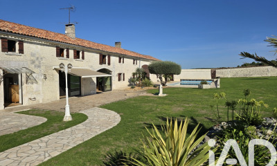 Située à proximité immédiate de Cognac, dans un environnement calme et verdoyant, cette ancienne propriété viticole et agricole datant du XVIIe siècle offre un cadre de vie serein, chargé d'histoire. La maison développée sur deux niveaux, se compose au rez-de-chaussée d'une vaste entrée traversante, d'une cuisine aménagée et équipée, d'une salle à manger, d'un salon, d'une seconde entrée et d'un cabinet de toilettes. À l'étage, une suite parentale avec salle de bains et dressing, une chambre avec salle d'eau privative, deux autres chambres, une salle d'eau supplémentaire, un wc et des rangements complètent l'ensemble. Le bien comprend également un grenier isolé, plusieurs caves, une chaufferie, une buanderie, ainsi que de nombreuses dépendances : ancienne écurie, atelier, chai, cuvier, pigeonnier avec local technique… Autant d'espaces offrant des possibilités d'aménagement variées. Un gîte indépendant a été aménagé avec soin, comprenant une pièce de vie avec cuisine, une salle d'eau, et un espace nuit en mezzanine. À l'extérieur, le terrain accueille une piscine, un bassin, un porche en pierre et de beaux volumes extérieurs, dans un cadre calme et sans vis-à-vis. Cette propriété, pleine d'authenticité, se prête aussi bien à une résidence principale ou secondaire qu'à un projet d'accueil ou d'activités. Honoraires : 5 % TTC inclus charge acquéreur (700 000 euros hors honoraires) Les informations sur les risques auxquels ce bien est exposé sont disponibles sur le site Géorisques : www.georisques.gouv.fr