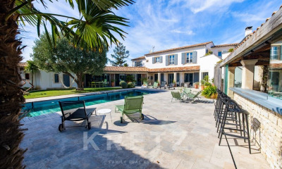 LE BOIS PLAGE EN RÉ : A quelques pas de l'Eglise et du coeur du village, belle propriété de plus de 160 m² de plain pied, calme, à deux pas des pistes cyclables et proche des commerces. Cette maison propose une belle pièce de vie et de réception de 70 m² avec cuisine ouverte et 3,40 m de hauteur sous plafonds, une suite parentale avec salle d'eau et dressing, quatre chambres avec quatre salle d'eau, une buanderie, garage. A l'extérieur vous profiterez d'une belle terrasse donnant sur sa piscine chauffée de plus de 8 mètres de long et d'un jardin exposé Sud. Ses atouts : Emplacement idéal au pied des pistes cyclables tout en étant à deux pas des commerces et du coeur du village, calme, luminosité, chauffage électrique au sol, piscine chauffée, garage, cinq chambres avec cinq salle de bains. (4.80 % d'honoraires TTC à la charge de l'acquéreur.) Driss ABOUZAKY (EI) Agent Commercial - Numéro RSAC : - .
