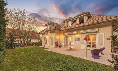 À VENDRE – Propriété de charme rénovée avec gîte et grange – Prévessin-Moëns Située dans un environnement calme et verdoyant, cette magnifique ferme Gessienne entièrement rénovée se compose de trois espaces distincts et offre de multiples possibilités d'exploitation. La maison principale (243 m²) propose : • Une cuisine entièrement équipée ouverte sur salle à manger, • Un grand séjour lumineux avec cheminée, pierres apparentes et belle hauteur sous plafond, • Un grand cellier et une buanderie, • Trois chambres, un dressing, une salle de douche, une mezzanine, • Un deuxième étage de 70 m² avec salle de bain et potentiel d'aménagement supplémentaire. Un gîte indépendant de 80 m² (actuellement utilisé comme maison d'hôtes) vient compléter ce bien : • Cuisine équipée, séjour, salle de douche, • À l'étage, deux chambres. Un atout majeur pour générer un revenu locatif ou accueillir famille et amis. À l'extérieur : • Grande terrasse exposée plein sud, • Plusieurs places de parking, • Une grange attenante d'environ 80 m² au sol, aménageable sur deux niveaux selon vos projets. La propriété est implantée sur un terrain clos de 508 m² et sécurisée par un portail automatique. Une opportunité idéale pour une grande famille, une activité touristique, ou un investissement patrimonial aux portes de la Suisse. Les honoraires sont à la charge du vendeur. Les informations sur les risques auxquels ce bien est exposé sont disponibles sur le site Géorisques : georisques. gouv. fr. Réseau Immobilier CAPIFRANCE - Votre agent commercial (RSAC N°883 372 526 - Greffe de BOURG EN BRESSE) Margot BORDIER Entrepreneur Individuel Réf.903773