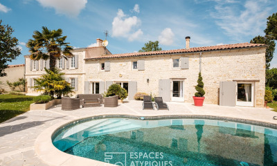 Charentaise de charme aux portes de La Rochelle – Un bien d'exception - COUP DE CŒUR GARANTI – Maison en pierre rénovée avec goût. À seulement 13 km du Vieux Port de La Rochelle Dans un cadre naturel privilégié, à l'abri des regards et entourée de verdure, cette superbe longère en pierre vous ouvre ses portes. Alliant le cachet de l'ancien et le confort contemporain, cette propriété rare séduit dès le premier regard.