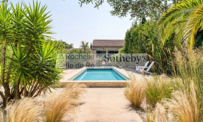 La Rochelle Île de Ré Sotheby's International Realty vous présente cette élégante propriété idéalement située au cœur de la commune de Loix, à quelques pas seulement du centre du village. D'une surface habitable d'environ 182 m², cette authentique maison de village séduit par son charme discret et son atmosphère paisible. Conçue pour accueillir famille et amis en toute sérénité, la maison se compose d'une belle pièce de vie comprenant un salon cosy avec cheminée, une cuisine aménagée et équipée ouverte sur une vaste véranda lumineuse donnant sur la terrasse et son jardin arboré. La partie nuit comprend quatre chambres dont une avec salle d'eau, une salle de bains et un bureau. À l'extérieur, le charme du grand jardin paysagé de plus de 1500 m², clos de murs en pierre offre un cadre idyllique avec des possibilités d'agrandissement/construction. Un bel atelier de 30 m² ainsi que du stationnement viennent compléter ce bien. Une propriété de caractère à découvrir sans tarder. Annonce rédigée par Benoit AMADON EI – Agent commercial – RSAC La Rochelle n° 839 503 067