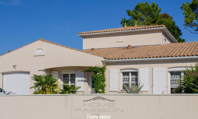 L'agence Remax Les Mathes vous présente en exclusivité cette charmante villa d'environ 177 m², située dans un quartier calme et résidentiel. Elle se compose d'un spacieux hall d'entrée offrant plus de 5 mètres de hauteur sous plafond, ainsi que d'un salon-séjour de plus de 60 m² avec cheminée traversante. Ces deux espaces donnent accès à une terrasse couverte. La maison dispose également d'une cuisine indépendante avec un cellier attenant. Une chambre, une salle de bains avec douche ainsi que des WC séparés complètent le rez-de-chaussée. À l'étage, un couloir dessert trois chambres, une salle d'eau avec WC et un bureau. Un grand garage complète ce bien. À l'extérieur, vous profiterez d'une terrasse couverte de plus de 30 m² et d'une piscine de 4,5 x 9 , le tout sur une parcelle entièrement close de 1 200 m². Jean-Christopher Gagnon / Jean-Baptiste Weiss Disponibles 7j/7 Honoraires à la charge du vendeur. Les informations sur les risques auxquels ce bien est exposé sont disponibles sur le site Géorisques : .