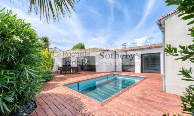 La Rochelle Île de Ré Sotheby's International Realty vous propose de découvrir cette remarquable maison d'architecte de 320 m² (dont 278 m² habitables), implantée sur un terrain de 1 200 m² soigneusement paysagé. Un jardin élégant conduit à l'entrée principale, agrémentée d'un espace de retournement et d'un double parking couvert, équipé d'une borne de recharge pour véhicule électrique. À proximité immédiate de l'habitation, un bureau indépendant et un garage à vélos complètent les prestations extérieures. L'intérieur, raffiné et fonctionnel, s'organise autour d'un vaste hall d'entrée avec vestiaire et toilettes invités. Il dessert un salon lumineux, une salle à manger, une salle de billard, ainsi qu'une cuisine haut de gamme entièrement équipée, prolongée par une arrière-cuisine discrète et une buanderie. L'espace nuit comprend une suite parentale avec entrée privative, dressing, salle de bains avec douche, chambre et toilettes séparées. Deux autres chambres disposent chacune de leur propre salle d'eau, de toilettes séparées et de dressings. Deux chambres d'amis avec rangements et salles d'eau privatives complètent cet ensemble. Pensée pour le bien-être, la maison offre également un hammam avec douche, une piscine chauffée et un espace dédié avec douche et vestiaire. Toutes les pièces de vie s'ouvrent généreusement sur le jardin, offrant une luminosité naturelle exceptionnelle et une parfaite harmonie entre intérieur et extérieur. Construite avec des matériaux nobles et des prestations haut de gamme, la propriété bénéficie notamment d'un chauffage réversible par aérothermie, de parquets massifs, de carrelages italiens dans les salles d'eau, de fenêtres à triple vitrage, d'une terrasse composite bois 3D, d'un liner 3D pour la piscine, et d'une pompe à chaleur. Enfin, la maison est située en zone blanche du Plan de Prévention des Risques Naturels (PPRN), assurant un environnement serein et sécurisé.
