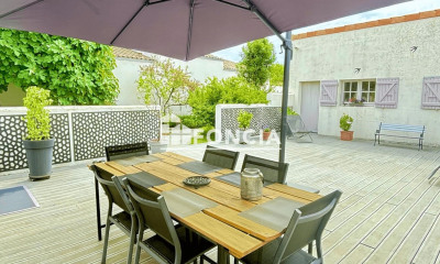 Exclusivité Orpi Aux portes de Chatelaillon et à 2,5 km de la plage, venez découvrir cette spacieuse maison de plain pied et sans mitoyenneté sur une belle parcelle de terrain de 2274 m². D'une surface habitable de 165 m², elle offre une belle entrée, un bureau attenant, une salle de séjour et coin cuisine de plus de 40 m² ouvert sur un salon-véranda très lumineux de 30 m², une belle arrière cuisine-buanderie de 14 m². La partie nuit comprend 4 chambres, une salle d'eau et un wc séparé. Deux grands garages indépendants de 42 et 37 m². En plus, 2 logements avec une entrée indépendante de type ''2 pièces'' loués à l'année (revenus 11 500 euros). Cette maison pourrait aussi convenir à une profession libérale avec une salle d'attente et bureau ou à un artisan avec les dépendances de 80 m². Référence agence : 3628