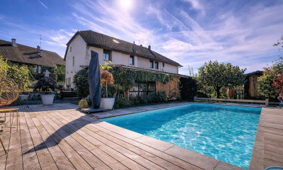 DIVONNE SOTHEBY'S INTERNATIONAL REALTY présente ce domaine équestre à Saint-Genis-Pouilly. À seulement 16 km de Genève, ce domaine bénéficie d'un cadre naturel préservé, offrant une respiration rare et un équilibre subtil entre proximité urbaine et qualité de vie. Édifiée au 19 € siècle, la bâtisse principale développe environ 202 m² habitables. Elle a fait l'objet d'une rénovation soignée, portant notamment sur la toiture, les menuiseries extérieures et les installations techniques, permettant aujourd'hui une lecture contemporaine de volumes authentiques. L'intérieur s'organise autour d'un espace de vie d'environ 72 m², largement ouvert et baigné de lumière. La cuisine, le salon et la salle à manger dialoguent naturellement autour d'une cheminée, véritable point d'ancrage de la maison. L'accès direct à l'extérieur et l'ensoleillement généreux renforcent cette sensation d'ampleur et de fluidité, créant une atmosphère à la fois chaleureuse et apaisante. La propriété s'inscrit sur un terrain d'environ 9 763 m², complété par environ 2 hectares de terrain en jouissance, offrant des perspectives ouvertes et un cadre cohérent avec la vocation équestre du lieu. Deux logements indépendants viennent enrichir l'ensemble.?Un logement de fonction en triplex, d'environ 45 m², comprenant cuisine, salon, chambre et salle d'eau. Un duplex indépendant de la bâtisse principale, d'environ 55 m², organisé avec une cuisine en rez-de-chaussée et, à l'étage, un salon, une chambre et une salle d'eau. Il se prête aussi bien à un usage locatif qu'à l'accueil d'invités. Les installations équestres, discrètement intégrées, permettent un usage confortable et fluide : Carrière extérieure de 50 × 35 m, marcheur pour chevaux installé en 2022, écuries comprenant 8 box, paddocks et prairies en jouissance. Les espaces de stockage et de service complètent l'ensemble. La configuration du site offre également la possibilité d'envisager le développement d'équipements complémentaires liés à l'activité équestre. Une propriété rare, à la croisée du patrimoine, de la nature et de la proximité genevoise, pensée pour celles et ceux qui recherchent un lieu de vie singulier, élégant et équilibré. Annonce rédigée par : Sébastien PONTIER EI Agent Commercial. DIVONNE SOTHEBY'S INTERNATIONAL REALTY, votre expert dans la vente de propriétés de luxe dans le Pays de Gex et le Genevois (Grand Genève). Géorisques?Les informations sur les risques auxquels ce bien est exposé sont disponibles sur le site Géorisques :
