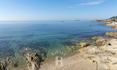 RV1689 - Portigliolo-Coti-Chiavari Située sur la très prisée presqu’île de Capu di Muru, au sud du golfe d’Ajaccio, cette propriété bénéficie d’un emplacement rare et recherché. Cette propriété de 2 villas propose une villa principale répartie sur 3 niveaux d'environ 338 m², avec plusieurs patios et terrasses couvertes. Elle dispose d’un salon et d’une salle à manger avec vue panoramique sur le golfe d'Ajaccio et les îles Sanguinaires, d’une cuisine séparée donnant sur sa terrasse, d’une buanderie, d’une bibliothèque et de 5 chambres en suite avec leurs salles d'eau. La villa du gardien d'environ 68 m² dispose d’un salon-séjour, d’une cuisine ouverte, de 2 chambres, et d’une salle d'eau. Le tout érigé sur un terrain d’environ 10 250 m², avec un jardin paysager d'essences locales, une piscine de 15 m x 10 m, et un double garage. Proche de la pointe de la Castagna, la station balnéaire de Coti-Chiavari non loin d’Ajaccio et de son aéroport international, offre un environnement calme et protégé. Honoraires à la charge du vendeur.