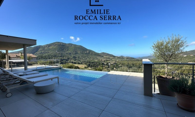 Située sur la commune d'Alata, propriété qui, de part sa situation, reste un bien d'exception car perché sur un belvédère avec une vue panoramique 360°. Son emplacement permet d'admirer le Golfe et la ville d'Ajaccio, le port, toutes les presqu'îles de la rive-sud, Bastelicaccia, la vallée de la Gravona, le village d'Afa, d'Appietto, le mont Gozzi et toutes les montagnes environnantes. La maison, sur 2 niveaux, a été édifiée dans les années 70 sur un terrain d'une contenance de 1750 m2 clôturé, exposée plein sud, sa superficie est de 190 m2 environ (sous réserve de mesurage). Elle comporte 8 pièces principales : au rez de jardin un grand coin jour avec cheminée, 2 bureaux, une chambre, une cuisine ,une salle d'eau, un wc . Toute la partie avant et latérale gauche est bordée par de grandes terrasses. Un escalier en colimaçon nous dirige au coin nuit regroupant 4 chambres, un wc, une grande salle de bains, un très grand grenier, de grands balcons, un solarium. Sur bas une piscine hors sol avec grande terrasse carrelée. La maison vétuste demande de gros travaux de normalisation et de mise au goût du jour en prévision la révision de l'électricité, plomberie, chauffage, remplacement des ouvrants, volets sols, peintures et rénovation façade, cuisine, sanitaire et cetera. A 5 min du centre de Mezzavia, à 15 min de l'aéroport et à 20 min du centre-ville d'Ajaccio et du port. Honoraires à la charge du vendeur. Non soumis au DPE. Les informations sur les risques auxquels ce bien est exposé sont disponibles sur le site Géorisques : georisques.gouv.fr.