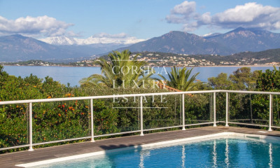 Située à 400 m de la plage, cette propriété d'exception vous offre un panorama imprenable sur le Golfe d'Ajaccio et les montagnes enneigées l'hiver. Edifiée au cœur d'un parc de 4 000 m² paysager et sans vis-à-vis dominant la mer, son jardin méditerranéen et engazonné jouit d'une végétation luxuriante. Composé de deux villas, l'une principale et l'autre pour recevoir dans les meilleures conditions! La principale offre une entrée, une pièce à vivre traversante avec cheminée, bibliothèque et charpente apparente, baignée de soleil grâce à sa triple exposition, se prolongeant d'une terrasse. La cuisine indépendante, également, offre un accès terrasse et une très belle vue mer. Une suite principale traversante offre vue mer et jardin, et dispose d'une salle de bains plongeant dans la mer. En rez-de-piscine, trois suites avec salle d'eau s'ouvrent sur le jardin et la mer. Une buanderie et grande pièce de rangements/garage. L'espace piscine s'agrémente d'une salle à manger d'été sophistiquée (avec plancha et frigo), et d'une belle plage entourée de pelouse. Un bonheur pour les enfants. En contrebas et invisible depuis la villa principale, une maison d'amis environs 130 m² offre une entrée et parking indépendant. Elle sera parfaite pour recevoir, ou pour une location. Elle comprend un séjour avec cheminée et terrasse couverte face à la mer. Une cuisine ouverte et équipée, trois chambres face à la mer, et deux salles de bains complètent cette habitation. Ce bien rare offre un cadre de vie idyllique, dans un environnement de qualité et discret ,à l'écart de toutes nuisances. 330 m² SH, 4 000 m² de terrain.