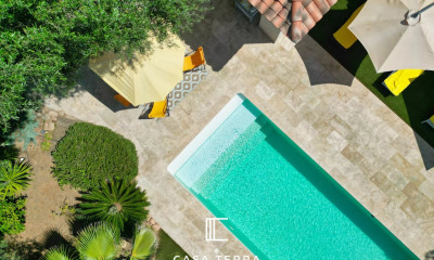 RV1974 – Arasu À quelques pas de la plage de St cyprien, cette villa contemporaine bénéficie d’un emplacement privilégié entre mer et nature. D’une surface d’environ 223 m², de plain-pied, elle offre un vaste espace de vie lumineux avec salon, salle à manger, cuisine américaine équipée et arrière-cuisine, ouvert sur une large terrasse partiellement couverte. Elle comprend 4 chambres, dont une suite parentale avec salle de bains et accès direct à la terrasse, et 3 chambres avec leur propre salle de douche complète. Implantée sur un terrain paysager d’environ 2 500 m², la propriété propose une piscine de 10 x 4 m bordée d’une vaste terrasse, d’une cuisine d’été et d’une douche extérieure. Pour compléter le bâti, un local technique en rez-de jardin. Vendue meublée, elle dévoile une décoration audacieuse, pensée dans les moindres détails pour une expérience de vie douce, contemporaine et harmonieuse. Arasu offre un cadre de vie recherché, à proximité de Porto-Vecchio et des plages emblématiques du sud de la Corse. Honoraires à la charge du vendeur.
