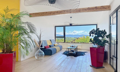 VILLA T6 - PISCINE - SOUS-SOL - TERRASSE - VUE DÉGAGÉE - VESANCY 01170 Bienvenue chez L'agence immo, votre partenaire immobilier de confiance. Mélanie GUEYFFIER, experte immobilier sur le secteur du Pays de Gex et alentours, est ravie de vous présenter cette superbe villa individuelle T6 implantée sur une parcelle de 1 180 m². Construite en 1980 et rénovée en 2024, elle développe 277 m² au sol dont 123,78 m² habitables. Elle offre 5 chambres, une piscine extérieure, un vaste sous-sol et un environnement exceptionnel, nichée au calme absolu dans une impasse verdoyante de Vesancy. Aménagement intérieur: Cette villa s'organise sur trois niveaux et propose un intérieur spacieux et lumineux. Une entrée pratique dessert le séjour-cuisine et l'espace nuit du rez-de-chaussée. Le vaste séjour-cuisine de 45 m², équipé d'une cuisine Schmidt, s'ouvre sur une terrasse prête à être aménagée. Trois chambres sont présentes à ce niveau, ainsi qu'une salle d'eau moderne avec douche, double vasque et WC, complétée par un WC indépendant avec lave-mains.À l'étage, les combles ont été aménagés en un espace chaleureux idéal pour les enfants. On y trouve une mezzanine, parfaite pour une salle de jeux, deux chambres mansardées ainsi qu'une salle de bains avec WC sanibroyeur.Le sous-sol entièrement ouvert réunit garage, atelier, buanderie et chaufferie sur plus de 87 m². Une cave fermée de 20 m² vient compléter cet espace, idéale pour le stockage ou la conservation de vins. Aménagement extérieur: La maison bénéficie d'un espace extérieur de plus de 800 m² parfaitement entretenu. Des haies récentes, encore en croissance, ont été plantées afin de préserver l'intimité de la propriétaire. Une grande terrasse de 30 m² domine une superbe piscine au sel de 9x4 m chauffée par pompe à chaleur, et offre une vue dégagée sur les montagnes et la nature environnante. Un potager et plusieurs emplacements de stationnement complètent cet extérieur agréable et fonctionnel. Prestations et équipements: La rénovation énergétique de 2024 confère à la maison un confort moderne et durable. Elle dispose d'une pompe à chaleur réversible permettant à la fois de chauffer et de climatiser, d'un poêle à granulés et d'un chauffage au sol sur la partie entrée-séjour. Pour l'eau chaude, un chauffe-eau thermodynamique dessert le rez-de-chaussée, tandis qu'un chauffe-eau classique alimente l'étage. Les volets roulants électriques centralisés, la fibre optique et la cuisine Schmidt viennent enrichir l'ensemble des prestations. Localisation et commodités: Implantée dans une impasse au coeur de Vesancy, cette villa profite d'un cadre rare et paisible, véritable havre de paix. À mi-chemin entre Gex et Divonne-les-Bains, vous profitez de toutes les commodités, commerces et établissements scolaires, de la maternelle au lycée, accessibles en quelques minutes seulement. La frontière suisse est également à proximité, ce qui en fait une adresse idéale pour les frontaliers. Informations complémentaires: Construite en 1980 et rénovée en profondeur en 2024, cette maison est implantée sur une parcelle individuelle de 1 180 m². Elle est disponible immédiatement et séduit par sa luminosité, ses volumes généreux et son emplacement privilégié dans un environnement verdoyant et calme. Pour davantage d'informations sur les risques éventuels, rendez-vous sur le site N'attendez plus pour découvrir cette superbe maison situ..