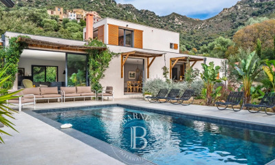 À seulement 10 minutes de Calvi, cette superbe propriété au cœur de Calenzana séduit par son authenticité et son cadre privilégié, idéal pour les amoureux de la montagne et du calme. Implantée sur une parcelle d'environ 2 500 m² et accessible par une double entrée, cette propriété d'environ 231 m² habitables se compose d'une maison principale et d'un appartement indépendant. La maison principale T5 : Elle propose de généreux volumes et un agencement idéal : - Hall d'entrée, - Premier salon avec coin cheminée ouvrant sur une terrasse couverte donnant sur le jardin, - Deuxième salon plus intimiste, - Salle à manger conviviale, - Cuisine avec terrasse attenante, - Cellier, - Chambre et salle d'eau avec WC avec son entrée indépendante. À l'étage : - Coin bureau, - Salle d'eau avec WC, - Suite avec coin dressing, salle de bain avec douche et baignoire, ainsi qu'une belle terrasse, - Deux chambres, dont une avec terrasse. L'appartement T2 indépendant : Accessible par une entrée privative et développé sur deux niveaux, il offre de multiples possibilités (accueil, location saisonnière, espace privé supplémentaire) et se compose de : - Salle à manger, - Cuisine, - Chambre, - Séjour, - Salle d'eau avec WC, - Buanderie. Son jardin arboré et luxuriant, piscinable, constitue un véritable écrin de verdure offrant intimité, sérénité et une vue panoramique imprenable sur les montagnes. Le terrain piscinable permet d'envisager la création d'un espace de détente supplémentaire, à la hauteur de l'ensemble. Un bien rare sur le secteur, idéal pour une grande famille, un projet de résidence principale ou secondaire de caractère, ou encore pour développer une activité de maison d'hôtes. Une alliance parfaite entre authenticité et confort moderne, à proximité immédiate du village et à seulement quelques minutes des plages et de l'aéroport de Calvi. * Climatisation réversible, Quartier résidentiel calme et recherché * Jardin clos et arboré * Vue panoramique sur les montagnes Coldwell Banker Allegrini Realty Roxane Pellegrini