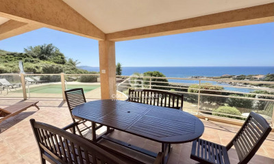 A l'abri des regards, ce bien d'exception situé dans la prestigieuse Marine de Davia, appelée aussi "la perle de la commune de Corbara", est un subtil mélange de confort moderne et de charme authentique. Elle jouit d'une quiétude rare, avec la mer et la plage à proximité, ajoutant une touche finale d'exotisme. Préservée de toute nuisance, elle s'étend sur un terrain de 1700 m2. Entièrement rénovée avec passion et raffinement, l'intérieur propose des menuiseries en provenance du Rajasthan, des revêtements en travertin posés en opus romain et des finitions intérieures en stucco. Cette villa unique de plain-pied, nichée dans un écrin de verdure, saura vous séduire par son architecture fluide, raffinée et son somptueux jardin exotique. Composition de la villa : La maison offre 136 m² habitable. Les lieux sont illuminés par de larges ouvertures offrant une vue sur le jardin verdoyant. Le hall d'entrée vous permet d'accéder à un bel espace de vie de 35m² équipée d'une cheminée avec insert, le tout ouvert sur le jardin et sa terrasse couverte, donnant l'impression que la nature s'invite à l'intérieur, dans le prolongement une cuisine aménagée sur mesure et équipée. Concernant la partie nuit, ce bien propose 5 chambres confortables, dont une pouvant faire office de bureau mais également une suite parentale de 19m² équipée de sa propre salle d'eau et toilettes avec vue sur mer, offrant tranquillité et rêverie. Une première salle d'eau avec WC dessert deux chambres. Une salle de bain sublime, vient desservir les deux autres chambres, entièrement habillée de bois noble, avec une baignoire balnéo sur mesure, charme et raffinement s'invitent dans cette pièce d'eau assurant bien être et relaxation. Cette demeure de caractère dispose de grandes terrasses: une couverte de 37m², accessible depuis le séjour et une autre ouverte attenante à la cuisine. Un escalier extérieur donne accès à un rooftop de 30m² offrant une vue à 180° degrés avec la mer en toile de fond. Invitation à la détente et évasion assurées ! Extérieurs et équipements : Vous ne pourrez qu'être conquis par cette véritable oasis de tranquillité. L'architecture et l'implantation de la maison s'intègre parfaitement dans ce cadre naturel. Un lieu de vie unique pour les amoureux de la nature et du bord de mer ! Son charme réside aussi dans ses aménagements extérieurs avec son habillage en pierre de taille locale. Les murs d'enceinte, sublimés par des clôtures en fer forgé, donnent une touche de caractère supplémentaire à cette demeure, mais aussi par l'escalier en enrochement, agrémenté d'une rampe en fer forgé, qui mène à la piscine. Le jardin paysager traversant la propriété et ses allées vous séduiront par la diversité des essences. Une piscine au sel sans vis-à-vis, surplombant la propriété, vient enrichir l'offre de ce bien rare sur le marché où chaque jour s'éveille face à un panorama d'exception. Un garage sécurisé et climatisé de 20 m² et un carport en fer forgé complètent l'ensemble. La villa est dotée d'équipements modernes, incluant un chauffe-eau thermodynamique, un système domotique, une alarme, un portail en fer forgé motorisé, un visiophone, un digicode. Cette villa d'exception, où chaque détail a été pensé avec soin, offre un cadre de vie idyllique alliant confort, élégance et sérénité. Nichée dans un environnement préservé, elle séduira les amateurs de nature et de raffinement en quête d'un lieu unique. Une invitation au bien-être et à l'évasion, à deux pas de la mer. Un bien rare sur le marché, à découvrir sans tarder ! Copropriété de 50 lots (Pas de procédure en cours). Charges annuelles : 960.00 euros. Lisandru DENSARI (EI) Agent Commercial - Numéro RSAC : 984 401 455 - Bastia.