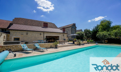 À Is-sur-Tille, cet ensemble immobilier rare conjugue patrimoine et modernité dans un cadre verdoyant. Édifié sur un terrain de 2 700 m² bordé par un bief, il se compose d'une demeure du XIXe siècle d'environ 240 m² entièrement rénovée et d'une dépendance du XVIIe siècle de plus de 300 m², avec piscine chauffée et sécurisée, terrasses et jardin paysager. L'ensemble séduit par son cachet et son fort potentiel d'aménagement. La maison principale dévoile une entrée desservant, d'un côté, un salon séjour lumineux et de l'autre une cuisine contemporaine ouverte sur la salle à manger. Ce niveau comprend également un vestiaire et des toilettes. Le premier étage possède deux suites spacieuses d'environ 30 et 40 m², chacune dotée d'une chambre, d'un dressing, d'une salle de bain et de toilettes privatives. Le deuxième étage propose trois chambres supplémentaires, dont une avec salle d'eau attenante, complétées par une salle de bain et des WC indépendants. Les volumes généreux, les matériaux nobles et la lumière naturelle confèrent à cet intérieur confort et élégance. La dépendance, ancienne bergerie partiellement rénovée, développe déjà plus de 150 m² habitables et chauffés. Elle comprend notamment une salle de jeux de 50 m² et une vaste pièce de réception de 70 m² ouverte sur une terrasse et la piscine. Ses surfaces libres laissent envisager de multiples projets : gîte, espace professionnel ou atelier d'artiste. L'ensemble bénéficie de la proximité immédiate des commerces, écoles, services et de la gare d'Is-sur-Tille. Un bien atypique et singulier où le charme de l'ancien rencontre les possibilités d'un projet de vie sur mesure. Montant estimé des dépenses annuelles d'énergie pour un usage standard : entre 2 880 EUR et 3 970 EUR par an. Prix moyens des énergies indexés sur l'année 2021 (abonnements compris) Consommation énergie primaire : 194 kWh/m²/an. Consommation énergie finale : 135 kWh/m²/an Les informations sur les risques auxquels ce bien est exposé sont disponibles sur le site #/ pour les zones concernées. Coline RODIER, Agent commercial (EI), RSAC 949 150 700 - DIJON (5.26 % d'honoraires TTC à la charge de l'acquéreur.) Coline RODIER (EI) Agent Commercial - Numéro RSAC : - DIJON.