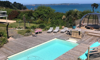 CÔTE & BRETAGNE IMMOBILIER VOUS PROPOSE VUE MER & EXCEPTION Une villa face à la mer À l'abri des regards, cette demeure de prestige s'ouvre pleinement face à l'horizon, offrant une vue spectaculaire et dominante sur la mer et l'île de Bréhat. Un cadre rare et recherché, où calme, lumière et nature composent un art de vivre unique. Des volumes lumineux et ouverts Dès l'entrée, le séjour séduit par ses volumes généreux, sublimés par un puits de lumière et de larges baies vitrées ouvrant sur une vaste terrasse face à la mer. La cuisine haut de gamme, pensée pour recevoir, dispose d'un plan de travail en granit avec table haute, alliant élégance et convivialité. De plain-pied, la suite parentale offre un confort absolu avec une salle d'eau contemporaine, un dressing indépendant et des WC séparés, dans une atmosphère intime et apaisante avec un accès direct à la terrasse. Une mezzanine panoramique À l'étage, la mezzanine au plancher de verre surplombe le séjour, renforçant la sensation d'espace et de lumière. Elle s'ouvre sur une grande terrasse panoramique face à la mer. Un espace bureau ou détente, aménagé dans un coin privilégié face à l'horizon, invite à la contemplation. Deux chambres aux plafonds inclinés ainsi qu'une salle de bain complètent ce niveau. Un extérieur d'exception L'extérieur s'intègre naturellement à la maison. Le jardin paysager et les terrasses tournées vers la mer composent un véritable espace de vie à ciel ouvert, comprenant : une piscine extérieure chauffée, un jacuzzi et un pool house avec cuisine d'été, idéal pour recevoir et profiter pleinement de la vue maritime. Un bois situé à l'arrière de la propriété vient compléter cet environnement naturel et préservé. Des volumes discrets et polyvalents Le rez-de-jardin accueille un grand garage, une cave à vin, un WC indépendant, ainsi qu'un vaste espace avec ancienne piscine intérieure, bénéficiant d'une possibilité d'ouverture sur l'extérieur, offrant un réel potentiel de réaménagement. Quelques rafraîchissements permettront de sublimer encore davantage ce bien et d'en faire un lieu véritablement unique. Une opportunité résidentielle attenante La propriété peut être complétée par l'acquisition d'un second lieu de vie : une maison indépendante d'environ 130 m2, offrant un fort potentiel d'investissement touristique ou de logement complémentaire. Une situation privilégiée Située à Loguivy-de-la-Mer, sur la commune de Ploubazlanec, cette villa surplombe la plage et bénéficie d'un panorama exceptionnel sur l'île de Bréhat. Loguivy séduit par son port de caractère et ses granits roses, ses écoles, ses restaurants et ses commerces de proximité. À moins de 5 minutes à pied de la plage, moins de 10 minutes en voiture du port de plaisance de Paimpol et à moins d'une heure des gares TGV de Guingamp et Saint-Brieuc, cette adresse constitue un lieu privilégié pour les amoureux de nature sauvage, à proximité immédiate d'une zone hautement touristique. Cette annonce vous est proposée par Sandra LE POULARD | Tel : Agent commercial immatriculé au R.S.A.C de Saint-Brieuc sous le no 991 665 985 . Votre Agence immobilière de prestige Côte du Goëlo, Saint-Brieuc, Paimpol, Ploubazlanec, Ile de Bréhat, Côte de Granit Rose. CLASSE ÉNERGIE : C / CLASSE CLIMAT : A. Montant moyen estimé des dépenses annuelles d'énergie pour un usage standard, établi à partir des prix de l'énergie indexés sur les années 2021, 2022 et 2023 : entre 1370 et 1910 EUR. Les informations sur les risques auxquels ce bien est exposé sont disponibles sur le site Géorisques : Prix : 1 239 960 EUR Honoraires inclus | 1 200 000 EUR hors honoraires. Honoraires : 3,33 % TTC à la charge de l'acquéreur. Cette annonce vous est proposée par LE POULARD Sandra - EI - NoRSAC: 991 665 985, Enregistré à Chambre de commerce et de l'industrie de Saint-Brieuc Côte et Bretagne Immobilier, votre agence immobilière de prestige en Bretagne. Vous souhaitez vendre ou acheter une maison en bord de mer, contactez-nous. Une équipe professionnelle à votre service.