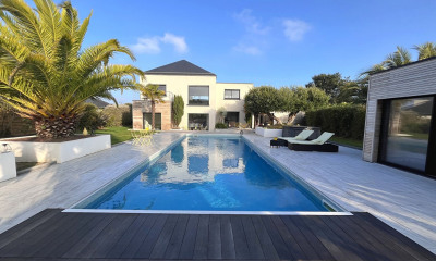 CÔTE ET BRETAGNE VOUS PROPOSE ÉLÉGANCE & RARETÉ Un Emplacement Privilégié Idéalement située à Pordic, cette propriété d'exception bénéficie d'un cadre de vie rare et recherché. À seulement quelques minutes à pied du centre-ville, des commerces et des établissements scolaires, elle offre également un accès immédiat à un parc boisé et à son étang, véritable havre de paix propice aux promenades et à la détente. Implantée sur un terrain paysagé d'environ 1100 m2, cette demeure hors du commun de 240 m2 conjugue élégance, confort et prestations haut de gamme. Une Architecture Élégante et Un Escalier Majestueux Dès l'entrée, la hauteur sous plafond impressionne et confère à cette maison un cachet unique. Le regard est immédiatement attiré par un escalier au design remarquable, véritable pièce maîtresse de l'espace de vie. Son élégance sculpturale habille parfaitement l'ensemble et apporte une touche d'exception à cette demeure. Le vaste salon-séjour, baigné de lumière, séduit par ses volumes généreux et son atmosphère chaleureuse, sublimée par un insert bois. Il s'ouvre sur une terrasse élégante et une piscine chauffée, créant un espace de vie intérieur-extérieur idéal pour les beaux jours. La cuisine, résolument moderne et entièrement équipée, a été pensée pour allier esthétisme et convivialité, parfaite pour partager de précieux moments en famille ou entre amis. Une buanderie indépendante vient compléter cet espace avec fonctionnalité. Des Espaces Nuit Raffinés et Confortables Le rez-de-chaussée accueille deux chambres spacieuses, chacune disposant de sa propre salle d'eau, d'un WC et de rangements intégrés. Certaines offrent également un accès direct à une terrasse privative, apportant une sensation d'indépendance et de sérénité. Un cabinet de toilette indépendant vient compléter cet étage pour plus de praticité. À l'étage, un vaste espace lumineux et modulable peut être aménagé selon vos envies : coin bibliothèque, salle de jeux pour les enfants, bureau.. Ce niveau abrite également de nouvelles chambres, toujours équipées de leur propre salle d'eau, espace de rangement et d'un accès direct à une terrasse ou un balcon, garantissant un confort optimal. Un Bien d'Exception aux Prestations Haut de Gamme Pensée dans les moindres détails, cette maison se distingue par la qualité de ses matériaux et son agencement optimisé. Un garage, un carport ainsi que plusieurs places de stationnement extérieures viennent compléter l'ensemble. Son jardin paysagé, exposé plein sud, met en valeur une superbe piscine chauffée entourée d'une terrasse, véritable invitation à la détente. Bien plus qu'une maison, cette demeure rare et hors du commun offre un cadre de vie agréable, où élégance et sérénité se rencontrent. Cette annonce vous est proposée par Lucile CHAPRON Tel: Agent commercial, immatriculé au R.S.A.C de Saint-Brieuc sous le no 891 440 141. Votre Agence immobilière de prestige Côte du Goëlo, Bord de Mer, Saint-Quay-Portrieux, Binic, Plérin. CLASSE ÉNERGIE : A CLASSE CLIMAT : A. Montant moyen estimé des dépenses annuelles d'énergie pour un usage standard établi à partir des prix de l'énergie des années 2021, 2022 et 2023 : entre 660 euros et 940 euros. Les informations sur les risques auxquels ce bien est exposé sont disponibles sur le site Géorisques : Prix : 1 245 600 EUR Honoraires inclus | 1200 000 EUR hors honoraires. Honoraires : 3.80% TTC à la charge de l'acquéreur. Cette annonce vous est proposée par CHAPRON Lucile - NoRSAC: 891440141, Enregistré à Chambre de commerce et de l'industrie de Saint-Brieuc Côte et Bretagne Immobilier, votre agence immobilière de prestige en Bretagne. Vous souhaitez vendre ou acheter une maison en bord de mer, contactez-nous. Une équipe professionnelle à votre service.
