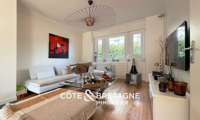 CHARME ET VUE MER. BRETAGNE - PLERIN, SAINT LAURENT DE LA MER, Bretagne, face à la mer avec une orientation sud dans la baie de Saint-Brieuc, emplacement unique pour cette propriété de charme qui offre de belles possibilités pour un confort intérieur unique. La demeure est édifiée sur un terrain de 4904 m2 arboré, paysager ou discrétion et intimité sont incontestables. Située au calme, cette propriété profite d'un environnement exceptionnel et surplombe la mer. Elle invite tout simplement à la tranquillité, la détente dans un cadre magnifique. À proximité des plages, des commerces.De construction traditionnelle et en pierre, cette demeure offre environ 228 m2 habitables. Une vaste entrée dessert une lumineuse pièce de vie de 44 m2 exposée Sud. Ce salon profite d'une belle vue sur la baie, une véritable pièce maitresse de cette propriété. La cuisine aménagée et équipée ainsi que la suite parentale avec sa salle de bains permettent une vie de plain-pied sur plus de 100 m2. La maison vue mer dispose également d'une pièce de rangement et d'une chaufferie au rez de chaussée. À l'étage, l'ensemble des chambres profitent d'une vue sur la mer ainsi que d'une belle luminosité tout au long de la journée. Une grande pièce de 22 m2 pouvant être utilisée comme chambre, un bureau ainsi qu'un wc et une lingerie pour compléter ce niveau. On retrouve également sur ce terrain clos une dépendance composée d'une pièce à vivre avec sa kitchenette et d'une salle d'eau. Deux garages fermés dont un double, des places de parking complètent ce bien hors normes. Parfaitement desservie par la nationale 12, cette maison familiale ouverte sur l'extérieur et baignée de lumière bénéficie de prestations rares à 2 h de Paris. Une propriété unique ou le coup de coeur est assuré, la beauté du cadre et l'avantage de la proximité immédiate de la mer. Votre Agence immobilière de prestige Saint-Brieuc, Côte de Penthièvre, Bord de Mer, Pléneuf-Val-André, Erquy, Lamballe. CLASSE ÉNERGIE : E /CLASSE CLIMAT : E. Montant moyen estimé des dépenses annuelles d'énergie pour un usage standard, établi à partir des prix de l'énergie de l'année 2021 : entre 3710 EUR et 5060 EUR. Les informations sur les risques auxquels ce bien est exposé sont disponibles sur le site Géorisques : Prix : 890 000 EUR Honoraires inclus | 857 418EUR hors honoraires. Honoraires : 3.80 % TTC à la charge de l'acquéreur. Côte et Bretagne Immobilier, votre agence immobilière de prestige en Bretagne. Vous souhaitez vendre ou acheter une maison en bord de mer, contactez-nous. Une équipe professionnelle à votre service.