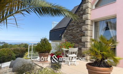 COUP DE COEUR avec vue mer !! Sur les hauteurs de Saint Quay Perros, nichée à seulement 800 mètres de la station balnéaire de la côte de Granit Rose, je vous invite à découvrir votre futur chez vous à 5 minutes à pied du port de plaisance de Perros Guirec et proche de toutes commodités, commerces, école, maison médicale .. Cette demeure contemporaine d'une surface habitable de 150 m2 construite en 2000 sera vous charmer par ses espaces généreux, sa luminosité traversante et la tranquillité de son emplacement en impasse résidentiel calme, à deux pas de la mer. Elle se compose comme suit: au rez de chaussée, le hall d'entrée avec rangement ouvre sur une pièce de vie de 55 m2 composée d'une cuisine aménagée et équipée ouverte sur le séjour salon avec accès à une terrasse exposée Sud et d'un balcon au Nord avec vue sur mer à couper le souffle. Deux chambres avec dressing dont une avec wc. une salle d'eau avec baignoire. wc Le sous sol comprend un garage spacieux de 50 m2 qui permet d'organiser un rangement et un espace buanderie avec accès direct au jardin. De plus, un appartement avec son entrée indépendante, idéale pour recevoir vos amis ou votre famille ou créer un revenu complémentaire pour une activité de location saisonnière composé d'une cuisine aménagée et équipée, d'un séjour, une chambre avec dressing, une salle d'eau avec wc. L'extérieur, vous emmène vers un parc arboré de 3399 m2 entièrement clos et très bien entretenu, un espace potager pour pouvoir s'évader. Tout à l'égout. Chauffage au gaz. Je vous attends pour vous présenter ce véritable COUP DE COEUR.. Les honoraires d'agence sont à la charge de l'acquéreur, soit 5,00% TTC du prix hors honoraires. Le Diagnostic de Performance Énergétique(DPE) a été réalisé selon une méthode valable mais non fiable et non-opposable. Les informations sur les risques auxquels ce bien est exposé sont disponibles sur le site Géorisques : georisques. gouv. fr. Réseau Immobilier CAPIFRANCE - Votre agent commercial (RSAC N°830 933 594 - Greffe de SAINT BRIEUC) Sylvie LE HOUEROU Entrepreneur Individuel Réf.882728