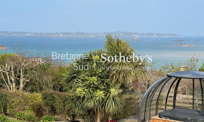 Bretagne Sud Sotheby's International Realty vous propose cette maison contemporaine offrant une vue imprenable sur l'archipel de Bréhat. Située dans un quartier résidentiel calme, à seulement 100 mètres de la plage, cette propriété construite en 2008 bénéficie d'un emplacement privilégié et rare sur le littoral costarmoricain. D'une surface habitable d'environ 130 m², la maison est idéale pour des vacances en famille comme pour un projet de location saisonnière. Le tout sur un terrain clos et paysager de 942 m², facile d'entretien. Elle se compose de trois niveaux : • Niveau jardin : deux chambres confortables, une salle d'eau et une buanderie. • Rez-de-chaussée surélevé : un bel espace de vie lumineux avec séjour et cuisine ouverte, une troisième chambre et une deuxième salle d'eau. • À l'étage : une mezzanine ouverte sur le séjour, et une quatrième chambre mansardée. Une grande terrasse en bois orientée ouest vous permettra de savourer les couchers de soleil face à la mer et de profiter pleinement de la vue exceptionnelle sur les îles de Bréhat. Vendue entièrement meublée, cette maison est prête à vous accueillir immédiatement, que ce soit pour votre usage personnel ou pour une mise en location saisonnière. Une opportunité rare, entre terre et mer, à découvrir sans attendre.