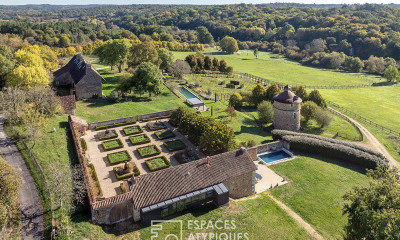 Charmante chartreuse du XVIIIème siècle, formant une cour, bel environnement, piscine, dépendances Dordogne, Périgord. Entre Bergerac et Périgueux. A 10 mn de tous commerces. Pas de nuisance, non isolé. Au sein de ses 8 ha, bois, prairies, noyeraie, truffière récente. Véritable chartreuse du XVIIIème siècle, très raffinée, formant une cour intérieure et vues sur un beau paysage RDC Entrée, wc. Bureau. Cuisine équipée. Salle à manger, cheminée. Buanderie, cellier. Salon , cheminée. 1 chambre, salle d’eau/WC. 1 chambre, cheminée, salle d’eau/WC. Étage 1 suite, point d’eau. 1 salle de bain/WC. 3 chambres. 1 salle de bain/WC. 1 chambre. Studio d’amis indépendant Salon, cheminée, cuisine équipée. 1 chambre, salle d’eau wc. Piscine. Dépendance aménagée en cuisine d’été. Grange : Garages, atelier, bûcher…
