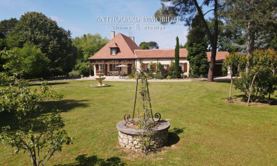 Réf.4513 : Élégante propriété du XIXème siècle près de Bergerac Située dans un village calme à quelques minutes de la rivière Dordogne, cette élégante propriété du XIXème siècle bénéficie d'un emplacement privilégié entre Bergerac et Saint-Émilion. À proximité d'un petit village de 1 600 habitants avec école, elle offre les premiers services essentiels à moins de 2 km : pharmacie, médecins, dentistes, boulangerie, supérette, et plus encore. La région regorge d'atouts. Bergerac, à seulement quelques kilomètres, séduit par son riche patrimoine historique et son charme authentique. Elle dispose également d'un aéroport international, facilitant les déplacements. Plus à l'ouest, Bordeaux, capitale de la Nouvelle-Aquitaine, est facilement accessible. Réputée pour sa vie culturelle dynamique, ses monuments classés au patrimoine mondial de l'UNESCO, et la célèbre Cité du Vin, Bordeaux propose également un aéroport international offrant une ouverture sur le monde. Pour les passionnés de golf, le prestigieux parcours 27 trous du Golf des Vigiers, avec son hôtel de luxe et son restaurant étoilé, est à quelques minutes. De nombreuses autres activités sont accessibles, comme le canoë sur la Dordogne, l'équitation grâce à plusieurs clubs hippiques, et des découvertes culturelles dans les célèbres villes de Bergerac, Saint-Émilion, et Bordeaux. Une opportunité rare pour vivre au cœur d'un cadre mêlant art de vivre, culture et sérénité. Située dans un charmant village, cette demeure d'exception offre un cadre privatif unique, entièrement clos de murs et de haies, où nature et commodités se côtoient harmonieusement. En franchissant un imposant portail en fer forgé, on découvre une élégante propriété du XIXème siècle orientée est-ouest, empreinte de caractère et d'histoire. Élevée sur deux niveaux, la maison principale dévoile au rez-de-jardin ses pièces de vie spacieuses, tandis que l'espace nuit occupe le premier étage. Sa façade, rythmée par des fenêtres aux encadrements en pierre et linteaux à auvent, met en valeur son charme ancien. L'escalier central, doté d'une rampe en fer forgé, témoigne du style de son époque. Le logis central, enduit avec des moellons d'angle apparents, est coiffé d'une toiture en tuiles plates agrémentée de deux fenêtres de toit. Deux bâtisses attenantes, de plain-pied, situées au nord et au sud de la maison principale, complètent l'espace habitable pour une surface totale d'environ 510 m². Ces constructions, réalisées en pierre avec un enduit et des toitures en tuiles canal de Gironde, s'intègrent harmonieusement au domaine. La symétrie parfaite des lieux est accentuée par deux pigeonniers situés de part et d'autre de la maison principale. Au nord-est de la cour, une maison annexe et un double garage offrent des espaces supplémentaires. À l'arrière, le parc arboré accueille un jardin paysager, une piscine, un pool house, et constitue un véritable havre de paix. Cette propriété allie caractère architectural, confort moderne, et cadre naturel exceptionnel. Au rez-de-chaussée : Bâtiment Sud : • Hall d'entrée vitré : Accueillant et lumineux, il donne accès aux différentes pièces. • Salon : (43 m² ; HSP: 3 m) Cheminée en pierre sculptée qui apporte une touche de charme et d'élégance. • Cuisine : (19,20 m²) Emplacement pratique, adjacente au salon. • Lingerie : Comprend un espace fonctionnel avec WC séparé. • Salle à manger : Ouverte sur une véranda de 40 m² offrant une vue dégagée sur le jardin et l'espace piscine. • Connexion avec le logis principal : Une porte au fond du salon permet d'accéder à un dégagement ouvrant sur le jardin côté Est, avec un WC et une salle d'eau. Logis principal : Couloir de distribution : À droite : Chaufferie et cellier, pratiques pour le rangement et l'entretien. À gauche : Un salon dédié à la musique, avec des murs en pierre apparente et des poutres au plafond, offrant une ambiance chaleureuse et paisible. Bâtiment Nord : • Grande pièce : (110 m²) Charpente et pierres apparentes, cheminée imposante, idéale pour des réceptions ou une transformation en espace de vie convivial. • Cuisine attenante : (15 m²) À rénover pour personnalisation selon vos besoins. Ce rez-de-chaussée propose des espaces de vie lumineux et chaleureux, combinant authenticité et potentiel d'aménagement, tout en offrant une belle harmonie entre les différentes parties de la propriété. Au premier étage : • Accès : Un escalier central en bois mène à l'étage, mettant en valeur le caractère authentique de la maison. • Vestibule : (32 m²) Espace de distribution central, spacieux et lumineux, donnant accès aux différentes pièces de l'étage. • Côté droit : Chambre 1 : (31 m²) Salle de bains privative. Chambre 2 : (20 m²) Salle de bains privative. • Côté gauche : Suite parentale : Chambre (31 m²) accompagnée d'une salle de bains et d'un dressing, idéale pour un confort optimal. Au deuxième étage : le grenier de 130 m² : • Potentiel : Un espace idéal pour la création de chambres supplémentaires ou pour aménager un espace de loisirs, bénéficiant d'une belle hauteur et d'un charme authentique. Cet étage offre de vastes espaces de nuit, combinant confort, fonctionnalité et potentiel d'agrandissement pour répondre aux besoins d'une grande famille ou d'un projet de maison d'hôtes. Cette propriété d'exception offre un cadre idéal pour une famille ou une profession libérale, grâce à ses vastes espaces de vie, ses deux cuisines, et ses pièces indépendantes. Elle constitue également une opportunité unique pour un projet de maison d'hôtes avec table d'hôtes, bénéficiant de ses chambres spacieuses, de ses espaces conviviaux et de son potentiel d'aménagement supplémentaire. Un lieu alliant charme, confort et possibilités multiples. Les dépendances de cette propriété aj