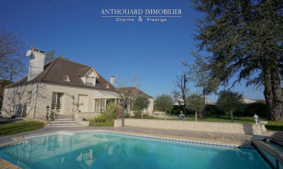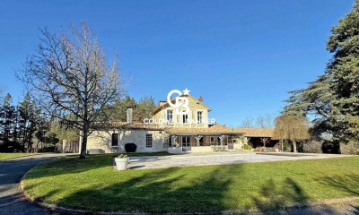 Charmante gentilhommière en pierre sur son parc de 1,7ha, dans un environnement très privilégié Périgord Pourpre. Bergerac à 15mn. Dans une très jolie campagne vallonnée et boisée, non isolé, pas de nuisance. Environnement très privilégié. Sur un parc clos de 1,7ha, puits. Verger. Piscine récente, 4×10, liner. Très bien exposée. Les bâtiments forment une cour fermée, portail en fer forgé. Magnifique gentilhommière en pierre dans un cadre bucolique RDC Entrée, escalier en bois. WC. Vestiaire. Salon/salle à manger, cheminée, donnant dans le jardin côté Sud. 60m2. Petite entrée côté Sud, vers garage. Cuisine indépendante, donnant dans le jardin côté Nord. Patio couvert vers la piscine. 2 belles chambres, donnant dans 1 salle de bain/douche commune. Étage Palier/bibliothèque. 3 chambres. 1 salle d’eau/WC. Combles aménageables. Dépendance Grange. Cave à vin. Fibre.