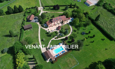 NOUVEAUTÉ ! Venez découvrir ce magnifique domaine composé de 2 maisons périgourdines, de 4 gîtes et d'un chalet (495 m² habitables) avec une piscine enterrée (10 x 5 m) et 170 m² de plage carrelée, sans aucun vis-à-vis. Situé en plein Périgord noir, dans la « vallée de l'homme » à mi-chemin entre Sarlat et Bergerac sur la commune du Buisson-de-Cadouin, ce domaine est édifié sur un terrain clos, arboré et paysagé de plus de 17 000 m² avec 2 accès indépendants (un privé et un pour la clientèle) et portails motorisés. Il dispose également de 2 parkings, dont un pouvant accueillir 8 voitures. Idéal pour une grande maison familiale ou pour la reprise de l'activité de gîtes et de maison d'hôtes. • La partie privée de 180 m² se compose d'une entrée avec nombreux rangements, un éminent séjour-salon cathédrale avec un mur troglodyte et poêle à bois. Une cuisine ouverte aménagée avec îlot central, une chambre parentale avec dressing, une salle de bains, un WC séparé, une buanderie, double vitrage et volets roulants électriques. Un escalier mène à une grande mezzanine, actuellement en salon-bureau, mais qui pourrait être affectée en chambre. À l'étage, hall d'accueil/rangements, 2 grandes chambres (20 m² chacune), salle de bains, WC séparé et combles aménageables de 32 m². Chauffage central au gaz avec production d'eau chaude. En extérieur, une terrasse ouverte de 50 m² et une terrasse couverte de plus de 20 m² avec barbecue intégré, offrant une vue dominante sur le parc, les gîtes et la piscine. • Le premier gîte en pierre du Périgord de 90 m² avec sa terrasse bois de 20 m² (barbecue) surplombe le parc et la piscine. En RDC, un salon-cuisine équipée donnant sur la terrasse, WC séparé, grande chambre parentale, salle de bains et WC séparé. À l'étage, 2 grandes chambres, une salle de bain et un WC séparé. • Les quatre autres gîtes sont des tentes « safari-lodges » tout confort de 50 m² intérieur avec 15 m² de terrasse protégée, mobilier bois résistant, parquet, de 5 à 6 couchages chacun, avec cuisine aménagée et équipée, grande salle d'eau et WC. • Un chalet en sous-bois de 20 m² intérieur et terrasse couverte de 15 m² complète l'offre, avec un salon, une cuisine équipée, mezzanine/chambre, salle de bains, WC. Garage de stockage de matériel/outillage (25 m²), cave et potager clôturé équipé de carrés et d'une serre. L'assainissement est composé d'une microstation et de 3 fosses toutes eaux. • Ce domaine est une référence de part les prestations offertes, tant dans la construction, l'animation, la restauration, l'aménagement, la circulation, la finition et la décoration des intérieurs et extérieurs. Tout a été pensé pour le bien-être du résidant et des hôtes.. un sans faute des propriétaires actuels ! Proche des commerces, écoles, pharmacie, médecins (généraliste, dentiste, infirmiers, kiné) et de la gare SNCF (1,5 km). Ce domaine bénéficie d'un excellent référencement sur les plateformes et dispose d'un remarquable rendement. La partie privée est bien dissociée de la partie activité. Proches des sites historiques et villages classés de la région, ce bien offre une multitude d'activités de loisirs et d'accès à la gastronomie périgourdine. L'ensemble est cédé avec tout le matériel et le site internet. Désireux d'une nouvelle existence combinant la sphère personnelle et professionnelle, cette propriété est idéale pour vous ! Merci de me fournir une garantie financière avant toutes visites (apport, banque, etc). Classe énergétique :?Maison Principale : E classe énergie et E GES ,?Maison gîte : C classe énergie et A GES Honoraires à la charge du vendeur Votre agent commercial 3G IMMO sur place EI - Loïc VENANT inscrit au RSAC de BERGERAC n° 521 526 152 Selon l'article L.561.5 du Code Monétaire et Financier, pour l'organisation de la visite, la présentation d'une pièce d'identité vous sera demandée. Les informations sur les risques auxquels ce bien est exposé sont disponibles sur le site Géorisques :