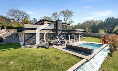 À l’extérieur, un garage double, stationnements supplémentaires et un environnement calme et verdoyant. Équipements de qualité : chauffage au sol, VMC, domotique, fibre optique, portail automatisé.