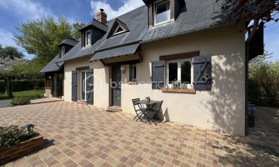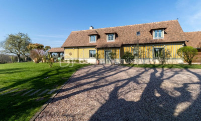 Dès que l'on franchit le portail de cette propriété d'exception, une belle émotion nous envahit. Nichée dans la commune de Fauguernon, intimiste et chargée d'histoire, à seulement 15 kilomètres de Pont-l'Évêque ( Sud-Est ) et à trente minutes de la Côte Fleurie, cette charmante maison normande séduit par ses belles tuiles traditionnelles et son architecture authentique.