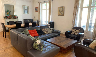 Dans un bel immeuble en pierre au rez de chaussé un bel appartement parisien chic avec la cheminée, parquet et moulures. Côté rue un salon et salle à manger, côté cour cuisine indépendante, 4 chambres dont une avec sa salle de bains et WC, une salle de bain et WC séparé. HSP 275 cm. Possibilité professionnelle.