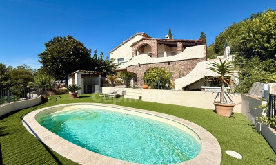 Le tout est niché sur un terrain paysagé de 2 549 m², agrémenté d'une piscine avec vue à couper le souffle et d'un terrain de pétanque pour de belles soirées d'été. Les honoraires d'agence sont à la charge de l'acquéreur, soit 3,50% TTC du prix hors honoraires.