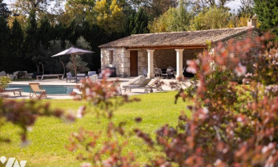 NOVES, Située au cœur d'un environnement totalement préservé, à deux pas du centre village , à proximité de la gare TGV et des Alpilles, cette propriété d'exception marie l'élégance des matériaux nobles à l'âme authentique du mas provençal. Imaginée par un architecte de renom et réalisée par un maître d'œuvre appliqué et passionné, elle offre un cadre de vie raffiné où tradition et modernité se répondent avec harmonie ! Une architecture qui se veut chaleureuse inspirée du mas d'antan , des finitions haut de gamme : bois massif, pierre naturelle, ferronnerie sur-mesure, portes anciennes, carreaux ciments, enduits traditionnels revisités . Un agencement contemporain pensé pour optimiser lumière, confort et circulation des espaces. Des équipements à la pointe de la technologie : domotique, chauffage par pompe à chaleur, isolation soignée, huisseries et menuiseries de qualité, systèmes de sécurité , multimédia intégrés.. Côté SUD , un jardin de 3 940 m² ( entièrement constructible) conçu pour mettre en valeur une végétation locale , offre un véritable écrin de verdure . Une oliveraie privée confère au lieu une atmosphère authentique propice à la détente et aux moments de convivialité ! Une vaste terrasse ombragée par une treille accueille un spacieux et agréable coin repas extérieur, idéal pour recevoir famille et amis lors des belles soirées d'été. La piscine à débordement, élégamment dessinée, séduit par ses finitions soignées et son espace détente et pour compléter cet ensemble, un pool house XXL de 100 m² en pierres et poutres apparentes invitant au farniente sous le soleil de notre belle Provence, ainsi qu'un double garage avec cave enterrée. Vous l'aurez compris, cette demeure proposée en exclusivité par votre notaire, est à venir découvrir , sous tous ses aspects et sans plus tarder ! DPE : B .. Les informations sur les risques auxquels ce bien est exposé sont disponibles sur le site Géorisques : georisques. gouv. fr - Consultez nos tarifs :