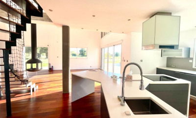 Comprenant un hall d'entrée, une pièce de vie ouverte (salon-séjour-cuisine) donnant sur une terrasse, arrière cuisine. Au premier niveau : deux chambres, un bureau ou chambre, salle de bain WC,