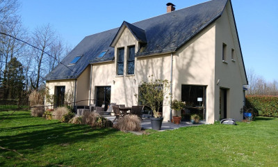 Située à cinq minutes de HONFLEUR sur la commune de Gonneville-sur-Honfleur dans le Calvados (14), cette belle maison contemporaine de 2011 très lumineuse est composée au rez-de-chaussée d'un hall d'entrée donnant sur un beau séjour salon avec poêle à bois rotatif, une cuisine aménagée et équipée, cellier, une chambre avec une salle de douche et sauna et au premier étage belle pièce palière, trois chambres et un bureau, salle de bain et douche, wc.