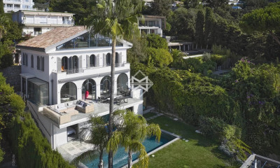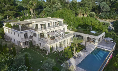 Neu gebaute Villa im neo-provenzalischen Stil mit einer ausgesprochen zeitgenössischen Dekoration. Diese 400 m2 große, voll klimatisierte Villa befindet sich im Viertel 'Super Cannes' und genießt einen herrlichen Meerblick von der Spitze des Cap d'Antibes bis nach Cannes und den Lérins-Inseln. Landschaftsgrundstück von 2.200 m2 - Terrassen Eingangshalle Gästetoilette und Garderobe Wohnzimmer mit Kamin, das sich zur Terrasse und zum Pool hin öffnet. Esszimmer Fernsehzimmer (Heimvideo) Zeitgenössische, perfekt ausgestattete Küche Hauptschlafzimmer (Kingsize-Bett) mit Ankleidezimmer - Bad / Dusche / WC Schlafzimmer (90 cm Bett) mit Badezimmer / WC. ETAGE: 2 Schlafzimmer, jedes mit 2 Einzelbetten (90 cm), Ankleidezimmer, Badezimmer / WC. Solarium ERDGESCHOSS: Schlafzimmer (Bett 160 cm) mit Duschraum / WC. Schlafzimmer (2 Betten 90 cm) mit Badezimmer / WC Schlafzimmer (Bett 140 cm) mit Badezimmer / WC. Kochnische - Waschküche Ausstattung: Satellitenempfang, ADSL WI-FI-Verbindung, Alarmanlage Sehr schöner Pool, der beheizt werden kann (20m x 6m). Teakholzstrand - Spa Garage