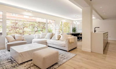 BARNES Madrid präsentiert diese spektakuläre, 182 m² große Eckwohnung im Erdgeschoss, die komplett renoviert wurde und sich durch ein zeitgemäßes Design sowie hochwertige Ausstattungsmerkmale auszeichnet. Sie befindet sich in einem eleganten, herrschaftlichen Gebäude mit Portier und einem genehmigten Projekt zur Fassadensanierung. Die Wohnung besticht durch ihre hohen Decken, großzügigen Fensterfronten und eine außergewöhnliche Helligkeit dank ihrer privilegierten Ausrichtung. Das Herzstück der Immobilie ist das großzügige Wohn- und Esszimmer mit integrierter Küche – ein offener, raffinierter Raum, der perfekt für den Alltag und das gesellschaftliche Leben gestaltet ist. Die Immobilie verfügt über drei Doppelzimmer, alle mit eigenem Bad, sowie ein Gäste-WC, was Komfort und Privatsphäre garantiert. Die Renovierung wurde mit edlen Materialien und einer sorgfältigen ästhetischen Auswahl durchgeführt: Naturholz, neutrale Farbtöne in gebrochenem Weiß und Tischlerarbeiten in Austernweiß schaffen eine elegante, warme und zeitlose Atmosphäre. ? Das Objekt befindet sich im prestigeträchtigen Stadtteil Almagro im Bezirk Chamberí, einer der exklusivsten und begehrtesten Gegenden Madrids. Umgeben von Botschaften, herrschaftlichen Gebäuden und klassischer Architektur verbindet Almagro auf perfekte Weise Tradition und Raffinesse. Das hervorragende gastronomische, kulturelle und Dienstleistungsangebot sowie die Nähe zum Stadtzentrum und die hervorragende Verkehrsanbindung machen es zu einem idealen Standort sowohl für den Hauptwohnsitz als auch für eine Investition. Eine vornehme Umgebung, in der Lebensqualität, Sicherheit und historischer Charme zusammenkommen, um ein einzigartiges Wohnerlebnis zu bieten.