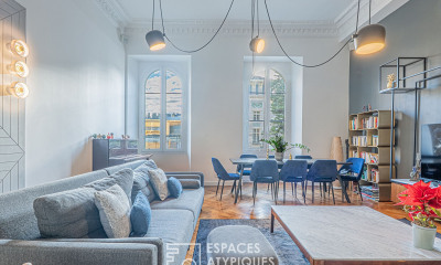 Schöne Sicht und Ost-West Ausrichtung : diese apartment (Duplex) 100 m², in 1867 gebaut Maisonettewohnung, im 4 Stockwerke besteht aus 4 Zimmern , darunter 3 Schlafzimmer und 2 WC. Sie besitzt Ineinem Wohnzimmer, eine Separate Küche, 2 Balkonen und einer Keller. Die Wohnung liegt im 4. Stockwerk mit einem Lift. Heizung : Individualheizung elektrisch. Anderes : Wechselsprechanlage, Parkett, Schornstein.