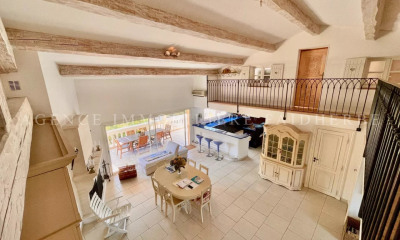 20 m vom Place des Lices entfernt, in einem neuen Gebäude, luxuriöses 108 m² großes Carrez-Apartment, sonnig, 4 Zimmer mit 2 Terrassen, im obersten Stockwerk mit Aufzug, ruhig. Es besteht aus einem schönen Eingang, einem großen Wohnzimmer mit amerikanischer Küche, Mittelinsel, Bar und Hochsitzen und öffnet sich zu einer schönen Terrasse von ca. 15 m² mit Sonnenschutz. Wir haben einen direkten Blick auf die Zitadelle von Saint-Tropez, den Place des Lices und das zauberhafte Grün... Das Wohnzimmer öffnet sich auch zu einer zweiten kleinen Terrasse, einer Gästetoilette, einem Flur, 1 Schlafzimmer mit eigenem Bad und Fernseher und einem großen Duschraum, Schränken und Toilette, 2 Schlafzimmer mit Schränken, 1 Duschraum. 2 Tiefgaragenstellplätze mit direktem Zugang per Aufzug, ein großer Keller von ca. 20m², Klimaanlage. Möglichkeit zum Kauf einer zusätzlichen Box.
