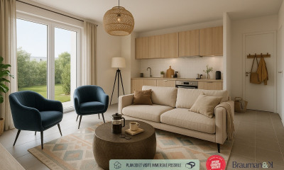 Mit Süd-Ost Ausrichtung : diese neue apartment74 m² besteht aus 3 Zimmer und 1 Badezimmer. Sie besitzt eine Keinee Küche, einer Terrasse und einem Parkplatz. Die Wohnung liegt im 7. Stockwerk mit einem Lift. Anderes : Zugangscode.