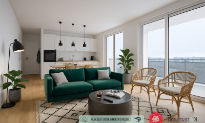 Mit West Ausrichtung : diese neue apartment54 m² besteht aus 2 Zimmer und 1 Badezimmer. Sie besitzt eine Keinee Küche, einer Terrasse und einem Parkplatz. Die Wohnung liegt im 6. Stockwerk mit einem Lift. Anderes : Zugangscode.