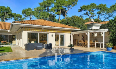Michael Zingraf Real Estate bietet Ihnen diese moderne 5-Zimmer-Villa in idealer Lage, nur 5 Gehminuten von den Geschäften und 15 Gehminuten vom Zentrum von Le Moulleau entfernt. Diese vollständig renovierte Immobilie mit einer Wohnfläche von ca. 185 m² besticht durch ihre Eleganz, ihre Helligkeit und ihre privilegierte Lage. Es besteht aus einem eleganten Eingangsbereich, einem großen Wohnzimmer mit Zugang zur Terrasse und zum Garten, einer Einbauküche mit kompletter Ausstattung sowie einer Waschküche. Der Schlafbereich bietet vier Elternsuiten, jede mit eigenem Bad und Ankleidezimmer, von denen die Hauptsuite einen atemberaubenden Blick auf das Bassin d'Arcachon bietet. Im Außenbereich profitieren Sie von einem privaten Kiesstrand, ideal, um schöne Sommerabende mit Blick auf das Bassin d'Arcachon zu genießen, sowie von einem Landschaftsgarten und einem Parkplatz. Diese Villa bietet ein seltenes und begehrtes Wohnumfeld, das Komfort, Eleganz und Lebensart in Le Pyla vereint.