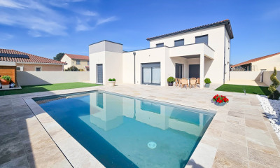 Mit Süd-West Ausrichtung : dieses haus 250 m², in 2025 gebaut, mit 800 m² Grundstücksfläche besteht aus 8 Zimmern , darunter 5 Schlafzimmer, 2 Badezimmer und 3 WC. Es ist mit , mit einem Swimmbecken, mit einer Terrasse und mit einer Garage. Heizung : Individualheizung. Honoraren : 4.46.