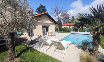 Ruhige Umgebung, mit Nord-Süd Ausrichtung : dieses haus 131 m², in 1999 gebaut, mit 407 m² Grundstücksfläche besteht aus 6 Zimmern , darunter 4 Schlafzimmer, 2 Badezimmer und 2 WC. Es ist mit Ineinem Wohnzimmer 55 m², mit ein esszimmer, mit einer Ausgestattete Kochnische, mit einem Swimmbecken, mit einer Terrasse und mit einem Parkplatz. Heizung : Elektrisch.
