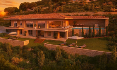 Mit Süd Ausrichtung : dieses haus (Villa) 300 m², in 1978 gebaut, mit 2433 m² Grundstücksfläche besteht aus 10 Zimmern , darunter 6 Schlafzimmer, 1 Badezimmer und 6 WC. Es ist mit Ineinem Wohnzimmer, mit einer Keineen Küche und mit einem Swimmbecken. Heizung : Kombinierte Heizungs- und Klimaanlage.