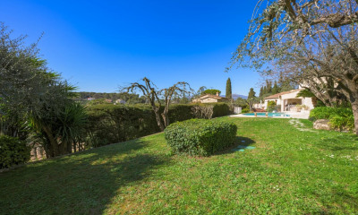 In Mougins, in einer grünen und friedlichen Umgebung gelegen, bietet diese charmante Villa mit einer Fläche von ca. 250 m² einen idealen Lebensraum für eine Familie. Sie öffnet sich über einen großen Eingangsbereich mit Einbauschränken, der zu einem hellen Kathedralenwohnzimmer mit Kamin führt, das einen atemberaubenden Blick auf das alte Dorf Mougins bietet. Der Wohnraum geht in ein geselliges Esszimmer und eine separate, vollständig eingerichtete und ausgestattete Küche über. Ein Gäste-WC sowie ein erstes Schlafzimmer mit Einbauschränken und angrenzendem Badezimmer vervollständigen diese Ebene. Im Obergeschoss befindet sich ein großes Mezzanin, das als zusätzliches Schlafzimmer oder Büro dienen kann und ebenfalls über ein Badezimmer verfügt. Der Schlafbereich besteht aus zwei Schlafzimmern mit Einbauschränken, die jeweils über ein eigenes Bad oder eine eigene Dusche verfügen, sowie einer Master-Suite mit Ankleidezimmer, Badezimmer und WC. Ein separates WC vervollständigt diesen Bereich. Das Ganze befindet sich auf einem wunderschönen, ebenen Grundstück von 3.500 m², das mit mediterranen Pflanzen bepflanzt ist und mit einem 6 x 12 m großen Pool, einem Poolhaus und einem Nebengebäude ausgestattet ist, das Sie nach Ihren Wünschen umbauen können. Ein Carport für zwei Fahrzeuge, eine Speisekammer, ein Keller im Untergeschoss sowie zahlreiche Parkplätze vervollständigen dieses seltene Objekt.