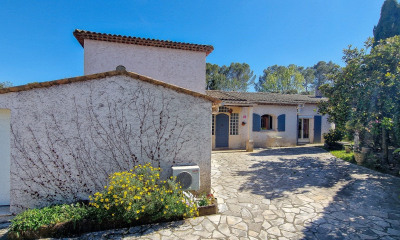 Villa von 184m² in perfekter Lage auf einem Grundstück von 1138m². Sie besteht aus einem Haupthaus, das im Gartengeschoss ein Wohnzimmer in Kathedralenform mit Kamin bietet, das sich zu einem Esszimmer hin öffnet, einem Raum von ca. 42m² mit Durchlicht, mit dem Pool auf der einen Seite und einer Terrasse auf der anderen Seite, die für Gäste einladend ist, insbesondere dank eines schönen Grillplatzes. Im Erdgeschoss befinden sich zwei Schlafzimmer, eines davon mit Eckdusche, sowie ein Badezimmer mit Eckbadewanne (Balnéo). Das Obergeschoss öffnet sich zu einem Raum im Zwischengeschoss, der ein Büro, einen begehbaren Kleiderschrank und ein Schlafzimmer mit einer Tropézienne-Terrasse beherbergt. Auf einer Seite der Villa befindet sich ein Apartment, das aus einem Wohnraum mit Küchenzeile (23m²), einem Schlafzimmer mit kleinem Vorraum (Etagenbett für Kinder) und einem Duschbad besteht. Die Villa verfügt über weitere Annehmlichkeiten: eine große Waschküche, Kellerräume, einen Werkstattschuppen und vor allem einen beheizten Pool mit einem schönen "Strand".