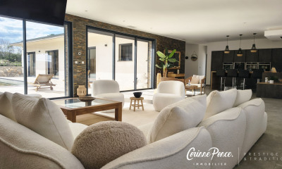 Schöne Sicht : dieses haus (Architektenhaus) 225 m², in 2013 gebaut, mit 3410 m² Grundstücksfläche besteht aus 7 Zimmern , darunter 3 Schlafzimmer. Es ist mit Ineinem Wohnzimmer 33 m², mit , mit einem Swimmbecken und mit einer Terrasse.