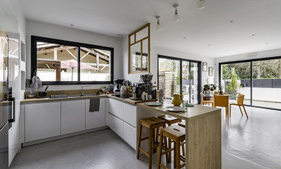 Mit Süd Ausrichtung : dieses haus (Modernes Haus) 223 m², mit 715 m² Grundstücksfläche besteht aus 8 Zimmern , darunter 6 Schlafzimmer und 2 WC. Es Ineinem Wohnzimmer, , einem Swimmbecken, einer Terrasse und 3 Parkplätze. Anderes : Schornstein.