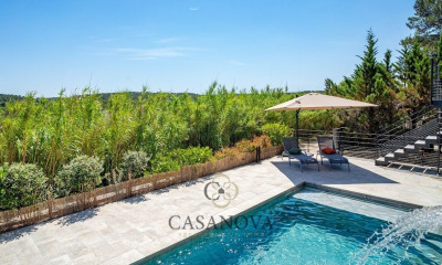 Ruhige Umgebung, mit Süd Ausrichtung : dieses haus (Architektenhaus) 220 m², in 2025 gebaut, mit 2000 m² Grundstücksfläche besteht aus 7 Zimmern , darunter 4 Schlafzimmer, 1 Badezimmer und 4 WC. Es ist mit einer Amerikanischen Küche, mit einem Swimmbecken, mit einer Terrasse, mit 2 Garagen und mit 2 Parkplätze. Heizung : Elektrisch.