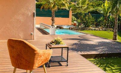 Mit Süd Ausrichtung : dieses haus 109 m², in 1995 gebaut, mit 907 m² Grundstücksfläche besteht aus 5 Zimmern , darunter 3 Schlafzimmer, 1 Badezimmer und 1 WC. Es ist mit Ineinem Wohnzimmer, mit , mit einem Swimmbecken und mit einer Garage. Heizung : Individualheizung. Honoraren : 3.66.