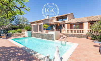 A Vendre à Sausset les pins, maison d'environ 180 m2 comprenant en rdc un séjour, une cuisine ouverte aménagée et équipée, une véranda, deux chambres, une salle d'eau, une salle de bain. A l'étage une chambre avec solarium. Sur une parcelle d'environ 500 m2 en restanque avec garage, salle de jeux, jardin et piscine hors sol. Contactez l'agence immo forum à Sausset les pins au 04 42 45 09 09